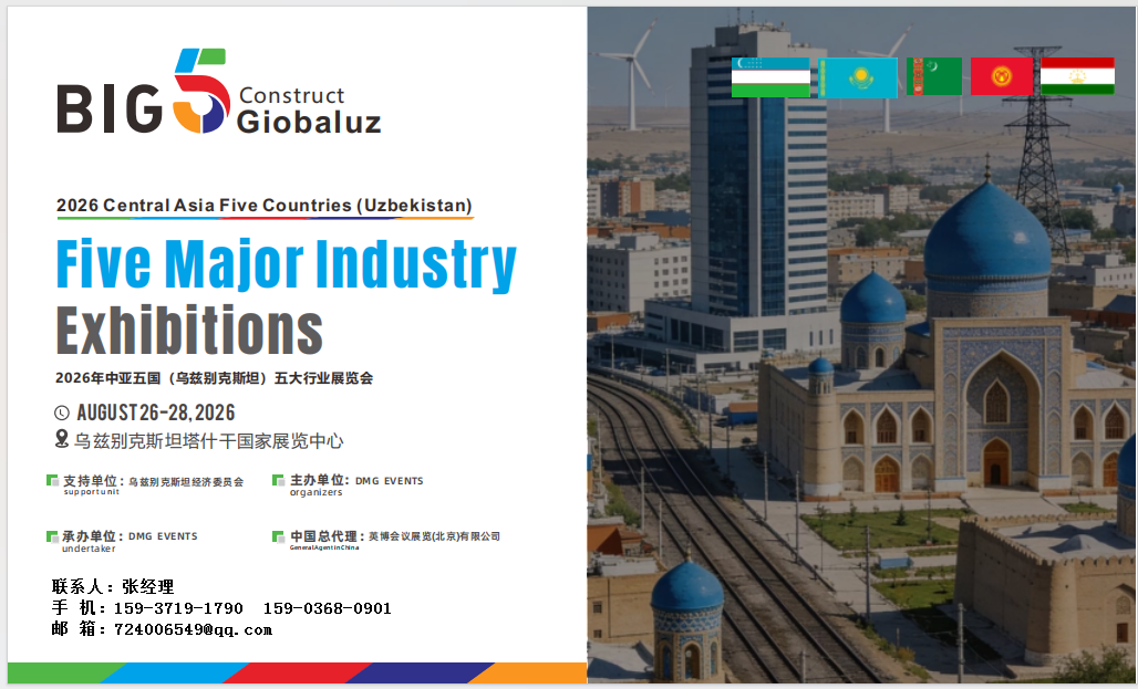 2026中亚五国(乌兹别克斯坦)五大行业展览会将于2026年8月26日至28日在乌兹别克斯坦塔什干国家展览中心举办