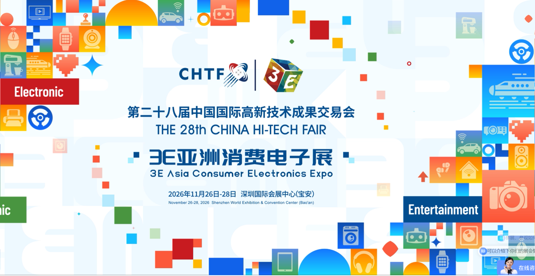 第28届高交会3E亚洲消费电子展将于2026年11月26日至28日在深圳国际会展中心盛大举行,这是一场汇聚全球消费电子行业精英、展示前沿科技与创新成果的行业盛会。